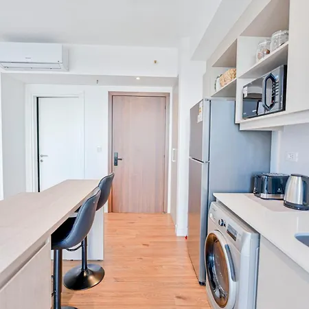 This accommodation includes a balcony and a fully equipped kitchen with an air conditioner for utmost comfort.